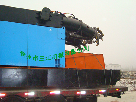 這兩套設(shè)備為全液壓絞吸式挖泥船,刀頭直徑為800mm,配用泵組為WN200型疏浚泵,主功率為258KW,工作量是120-150立方米每小時(shí),排出距離為600米。每小時(shí)油耗為50kg.