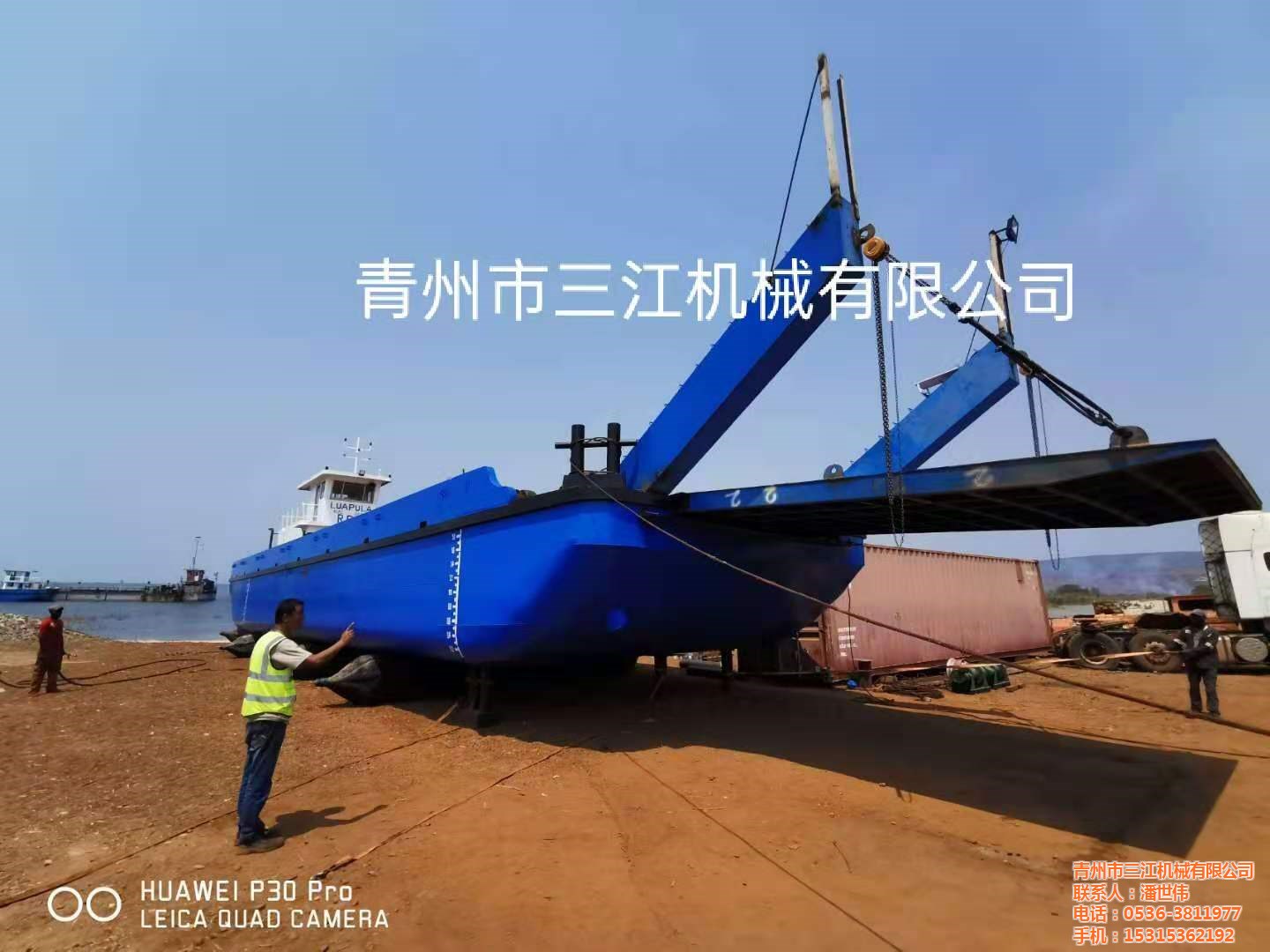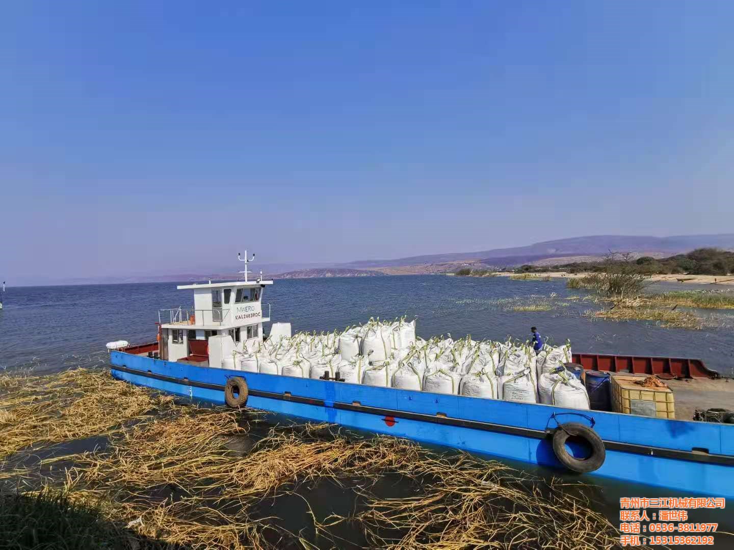 非洲剛果金客戶定做的兩臺(tái)200噸礦石運(yùn)輸甲板駁一次試車成功,交付使用。
